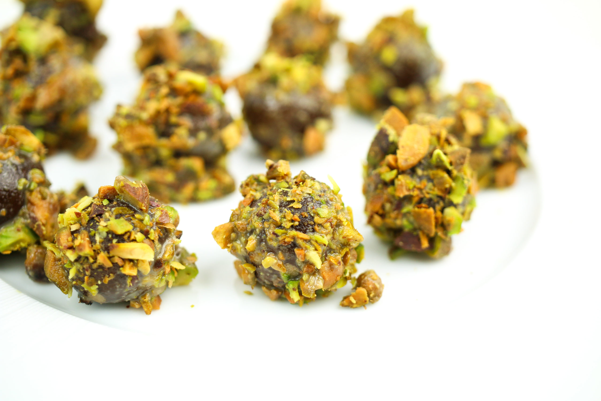 In doing this, we realized there’s a lot of flexibility to make these your own. Why just go with a chocolate center? We have both peanut butter and blueberry FIBER/PROTEIN Bars that can serve as a ganache too! Then top as you wish! Just follow this simple formula: